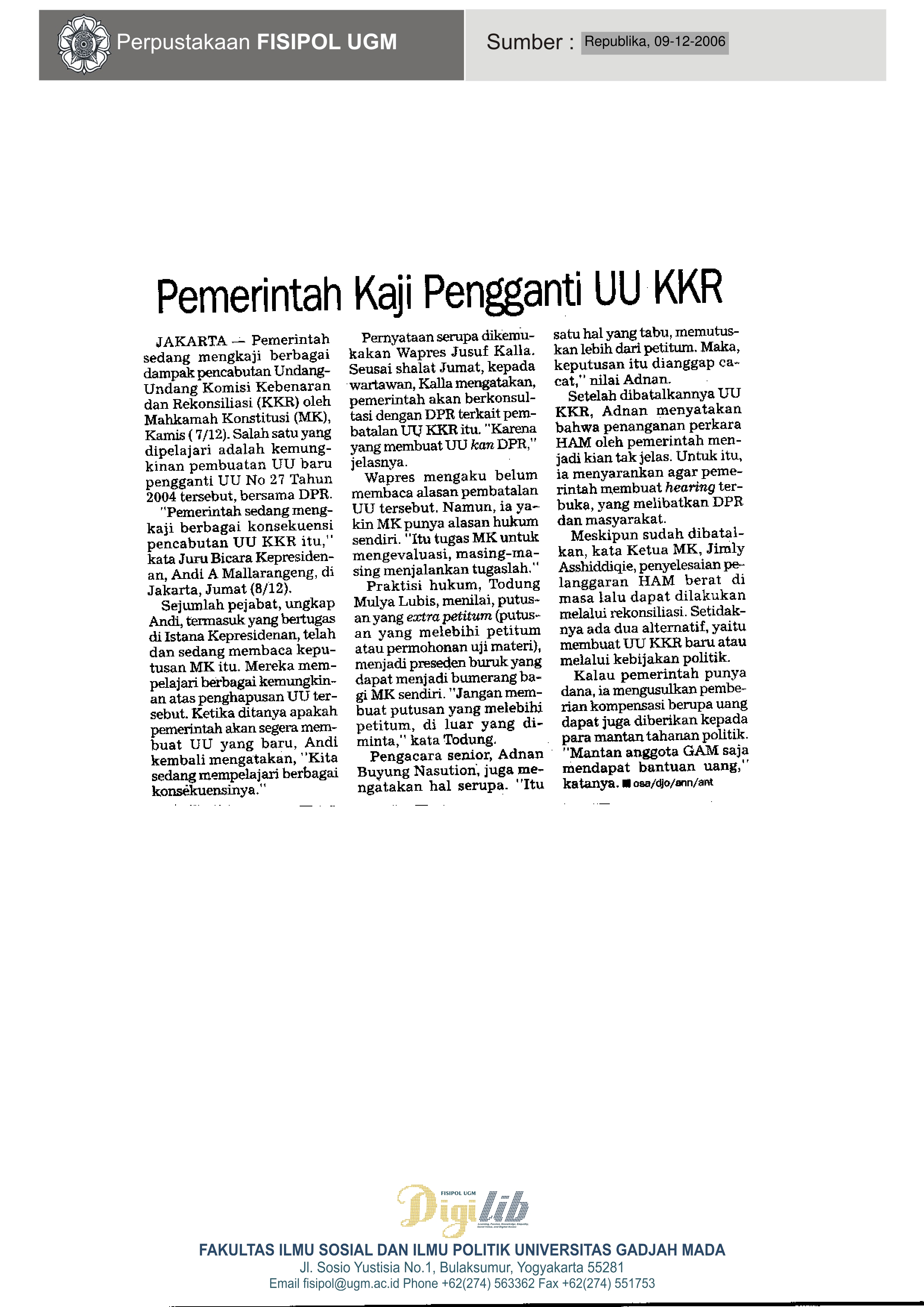 Pemerintah sedang mengkaji berbagai dampak atas dicabutnya Undang-undang Komisi Kebenaran dan Rekonsiliasi oleh Mahkamah Konstitusi. Salah satunya adalah dengan mempelajari kemungkinan pembuatan Undang-undang baru bersama DPR.