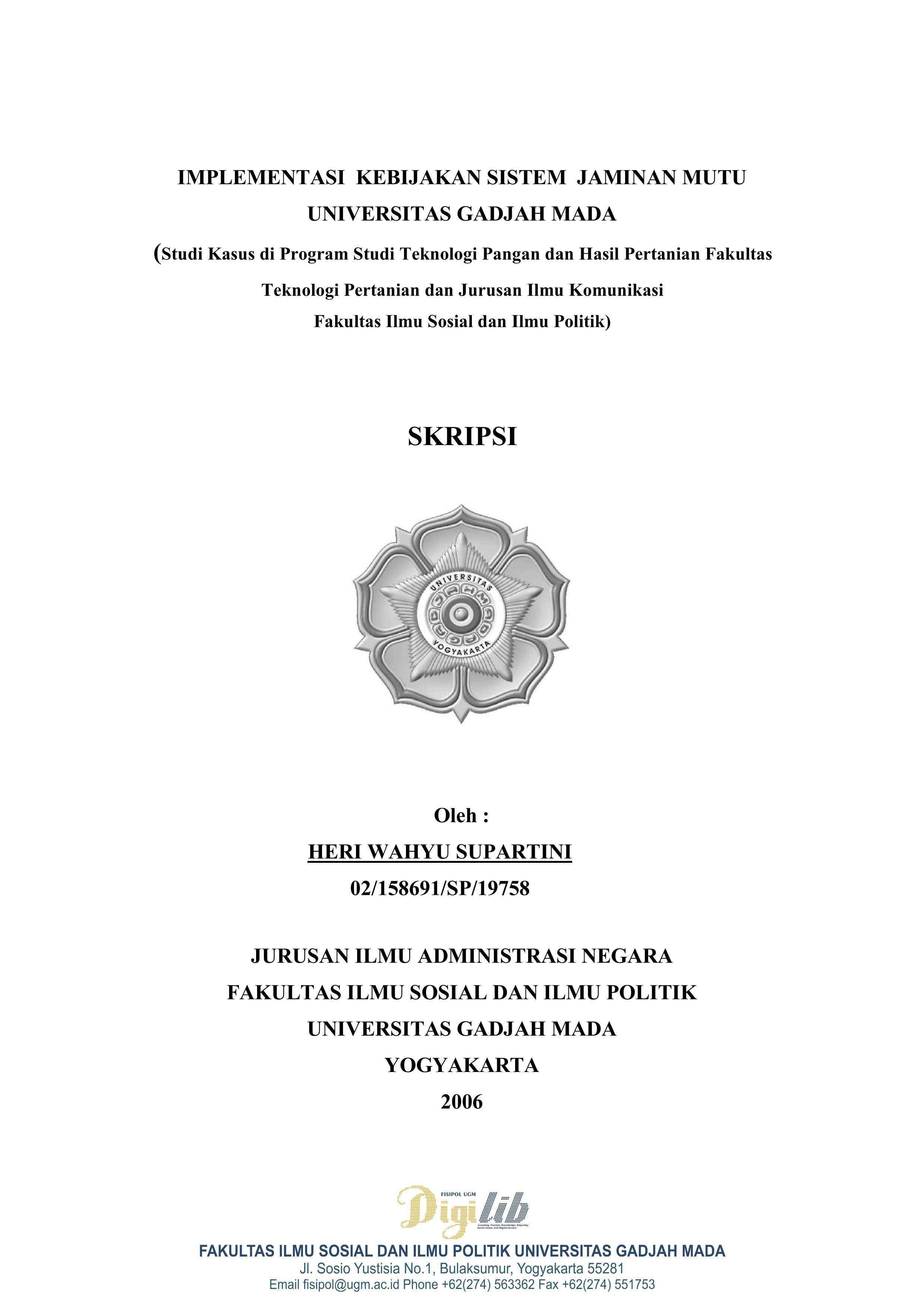 Implementasi Kebijakan Sistem Jaminan Mutu Universitas Gadjah Mada studi kasus di Program Studi Teknologi Pangan dan Hasil Pertanian Fakultas Teknologi Pertanian dan Jurusan Ilmu Komunikasi FISIPOL