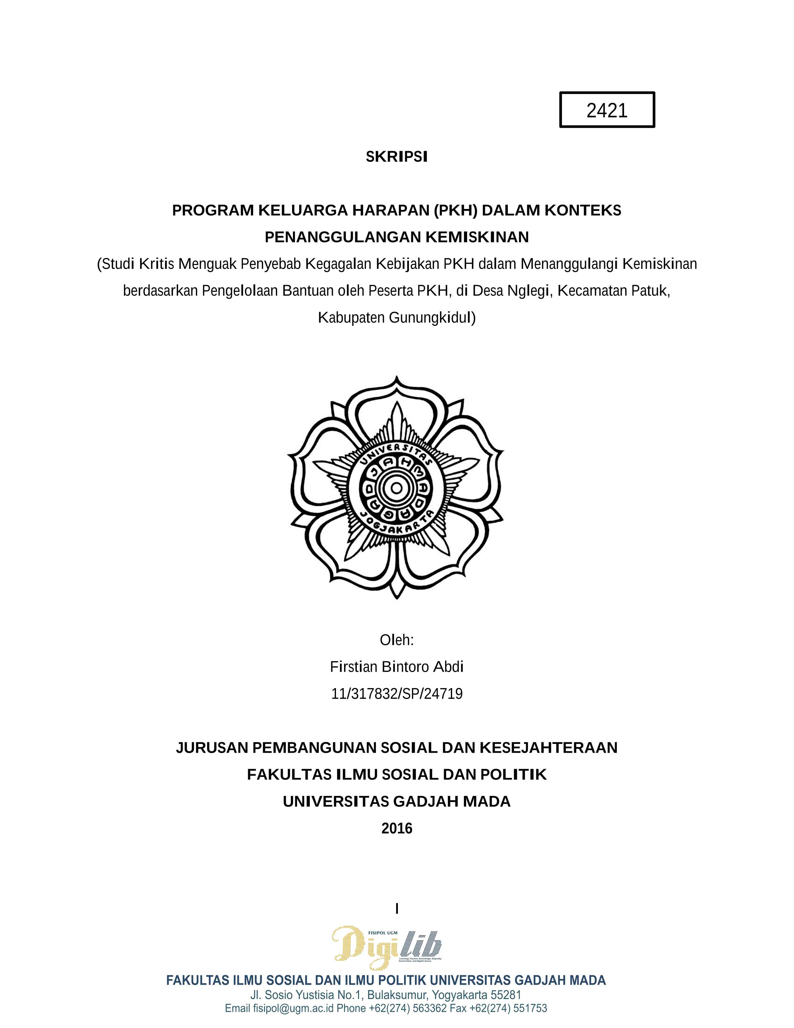 Program Keluarga Harapan PKH dalam Konteks Penanggulangan Kemiskinan Studi Kritis Menguak Penyebab Kegagalan Kebijakan PKH dalam Menanggulangi Kemiskinan berdasarkan Pengelolaan Bantuan oleh Peserta PKH, di Desa Nglegi, Kecamatan Patuk, Kabupaten Gunun